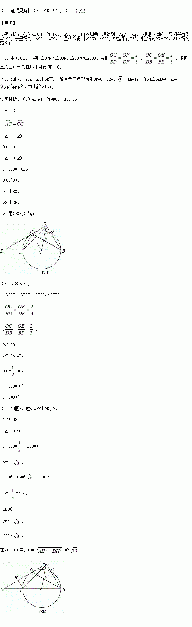 (3)连接AD,在(2)的条件下,若CD=2