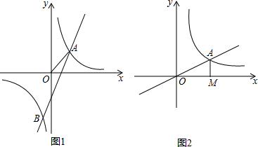 (2)如图2,正比例函数y=$\frac{1}{2}$x的图象与反比例函数y=$\frac{k}{x}$(k≠0)在第一象限的图象交于A点,过A点作x轴的垂线,垂足为M,已知△OAM的面积为1.