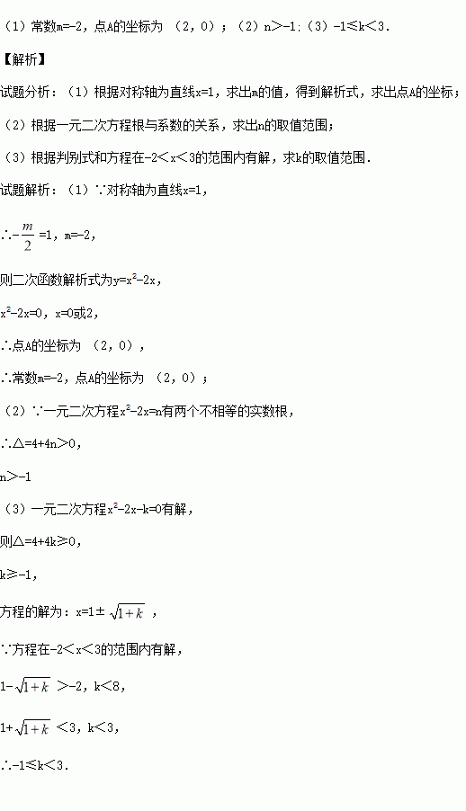 (3)若关于x的一元二次方程x2+mx-k=0(k为常数)在-2<x<3的范围内有解,求k的取值范围.