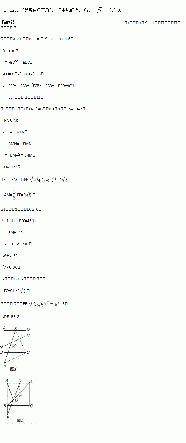 (2)如图2,连接EF交BD于M,当DE=2时,求AM的长;