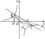 解:(1)∵S△OMB=$\frac{3}{2}$=$\frac{1}{2}$×OM×BM=$\frac{1}{2}$|k|,由反比例函数图象在第二、四象限,