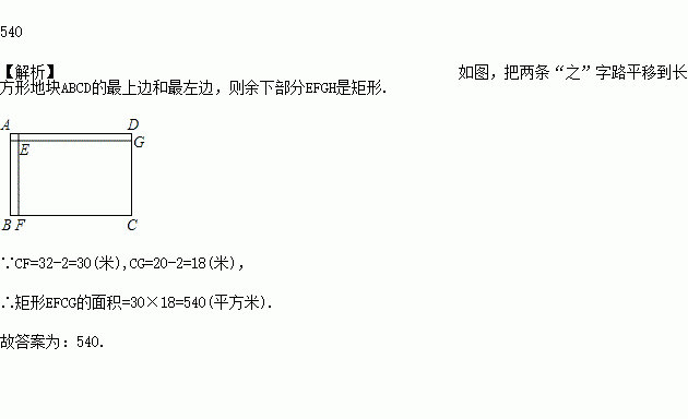 如图所示,某住宅小区内有一长方形地块,想在长方形地块内修筑同样宽的两条”之”字路,余下部分绿化,道路的宽为2m,则绿化的面积为____m2.
