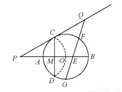 (3)点G为弧ADB的中点,在PC延长线上有一动点Q,连接QG交AB于点E,交弧BC于点F(F与B、C不重合)。问GE?GF是否为定值?如果是,求出该定值;如果不是,请说明理由。