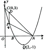 Èçͼ£¬ÒÑÖªÅ×ÎïÏßy£½ax 2£«bx£«c£¨a¡Ù0£©µÄ¶¥µã×ø±êΪQ£¨2£¬£1£©£¬ÇÒÓëyÖá½»ÓÚµãC£¨0£¬3£©£¬ÓëxÖá½»ÓÚA¡¢BÁ½µã£¨µãAÔÚµãBµÄÓҲࣩ£¬µãPÊǸÃÅ×ÎïÏßÉÏÒ»¶¯µã£¬´ÓµãCÑØÅ×ÎïÏßÏòµãAÔ˶¯£¨µãPÓëA²»Öغϣ©£¬¹ýµãP×÷PD¡ÎyÖᣬ½»ACÓÚµãD£®