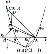 µ±µãPµÄ×ø±êΪP2£¨2£¬-1£©£¨¼´¶¥µãQ£©Ê±£¬Æ½ÒÆÖ±ÏßAP£¨Èçͼ£©½»xÖáÓÚµãE£¬½»Å×ÎïÏß