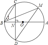 如图,AB是圆O的直径,弦CD⊥AB于点N,点M在圆O上,C为弧BM的中点.