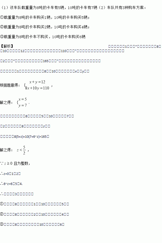 (1)求该车队载重量为8吨、10吨的卡车各有多少辆?
