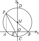 如图,在平面直角坐标系中,以M(0,2)圆心,4为半径的⊙M交x轴于A、B两点,交y轴于C、D两点,连结BM并延长交⊙M于点P,连结PC交x轴于点E.