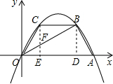 (3)设存在点C(x,-$\frac{2\sqrt{3}}{3}$x2+$\frac{4\sqrt{3}}{3}$x),过点C作x轴的垂线CE,垂足为E,交OB于点F,则S△OBC=S△OCF+S△BCF,而|CF|=yC-yF=-$\frac{2\sqrt{3}}{3}$x2+$\frac{4\sqrt{3}}{3}$x-$\frac{\sqrt{3}}{3}$x=-$\frac{2\sqrt{3}}{3}$x2+$\sqrt{3}$x,这样可以得到S△OBC=-$\frac{\sqrt{3}}{2}$x2+$\frac{3\sqrt{3}}{4}$x,利用二次函数就可以求出△OBC面积最大值,也可以求出C的坐标.