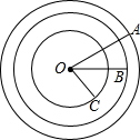 如图所示,以点O为圆心的三个同心圆,最大圆的面积为75π cm2,如果以点O为圆心的两个小圆把大圆O的面积三等分.