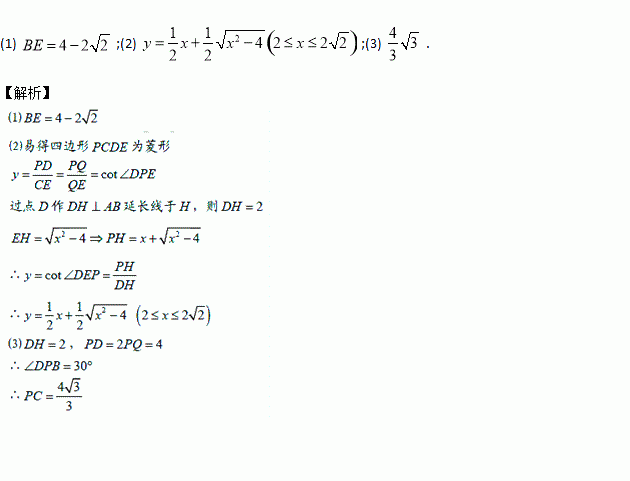 已知:如图,线段AB=4,以AB为直径作半圆O,点C为弧AB的中点,点P为直径AB上一点,连接PC,过点C作CD∥AB,且CD=PC,过点D作DE∥PC,交射线PB于点E,PD与CE相交于点Q.