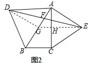 (2)过点E作EH⊥AC,延长交AB于G,连接DG,![]()