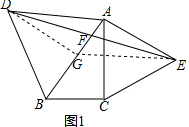 解:(1)如图1,取AB的中点G,连接DG,EG,