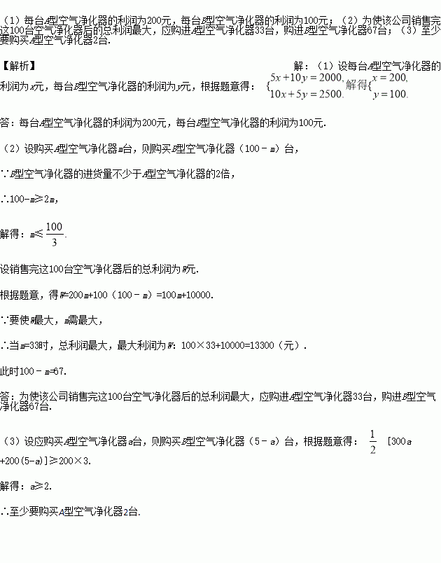 £¨1£©Ã¿Ì¨AÐÍ¿ÕÆø¾»»¯Æ÷ºÍBÐÍ¿ÕÆø¾»»¯Æ÷µÄÏúÊÛÀûÈó·Ö±ðÊǶàÉÙ£¿