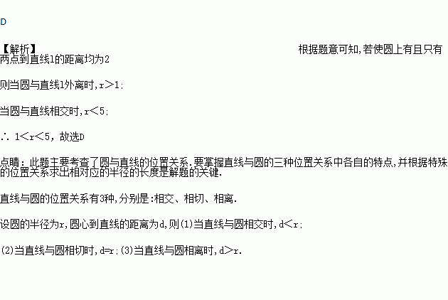 为半径画圆,如果圆上有且只有两点到直线