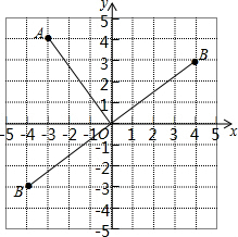 解答 解:如图所示:把点A绕坐标原点O逆时针旋转90°得到B,则B(-4,-3),顺时针旋转90°得到B(4,3)故答案为:(-4,-3)或(4,3).