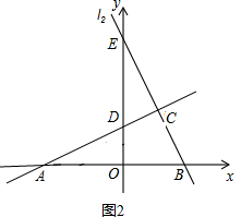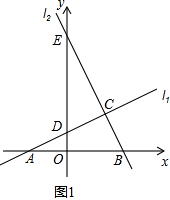 解:(1)如图1,由直线l1:y=$\frac{1}{2}$x+1可知A(-2,0),D(0,1),由y=-2x+6可知B(3,0),E(0,6),