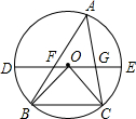 如图,△ABC为⊙O的内接三角形,∠A=60°,直径DE∥BC,AB、AC分别与DE相交于点F、G,若⊙O的半径为2,则线段FG的最大值为