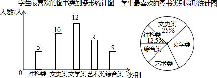 (2)根据条形图可知喜欢“文学类”的有12人,即可补全条形统计图;