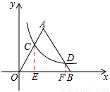 与边长为5的等边△AOB的边OA、AB分别相交于C、D两点,且OC=3BD,则实数k的值为 .