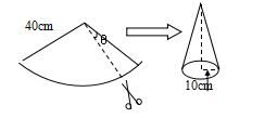 现有一张圆心角为108°,半径为40cm的扇形纸片,小红剪去圆心角为θ的部分扇形纸片后,将剩下的纸片制作成一个底面半径为10cm的圆锥形纸帽(接缝处不重叠),则剪去的扇形纸片的圆心角θ为 。