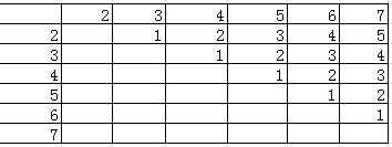 (2)两个正方体六个面上的数字分别为2、3、4、5、6、7时,大数减去小数的差数列表如下: