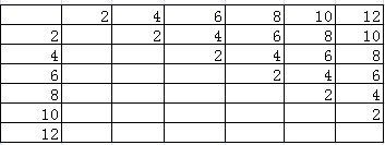 (3)数字分别为2、4、6、8、10、12时,大数减去小数的差数列表如下: