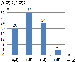£¨2£©C¼¶Õ¼30%£¬ÓÐ80¡Á30%=24£¨ÈË£©£®Èçͼ£º![]()