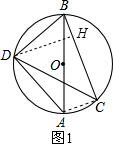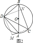 分析:(1)连接AC,如图1,根据圆周角定理得∠ADB=∠ACB=90°,而AD=BD,则∠ABD=∠BAD=45°,由于∠ABC=∠ADC=15°,所以∠CBD=∠ABC+∠ABD=60°;作DH⊥BC于H,如图1,在Rt△BDH中,利用含30度的直角三角形三边的关系得到BN=