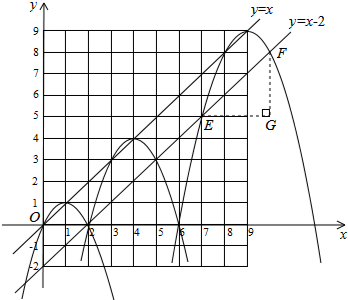 £¨3£©ÓÉA0£¨0£¬0£©£¬A1£¨2£¬0£©£¬ÇóµÃA0A1=2£»yn=-£¨x-n2£©2+n2£¬Áîyn=0£¬ÇóµÃAn-1£¨n2-n£¬0£©£¬An£¨n2+n£¬0£©£¬ËùÒÔAn-1An=£¨n2+n£©-£¨n2-n£©=2n£®
