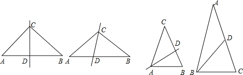 ①当过顶角的顶点的直线把它分成了两个等腰三角形,则AC=BC,AD=CD=BD,