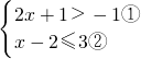 解不等式①得:x>-1,