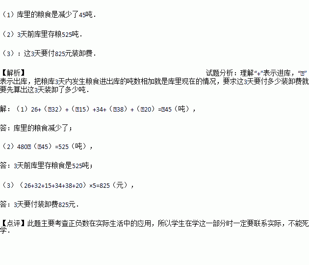 (8分) 粮库3天发生粮食进出库的吨数如下(“+”表示进库,“-”表示出库):