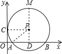 分析:首先过点P作PD⊥x轴于点D,连接PC,PA,易得PC=PA=5,PD=3,然后由垂径定理,即可求得AD的长,继而求得AB的长,继而求得答案.
