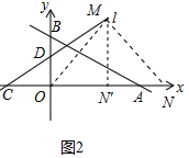¢ÙÈçͼ2ÖУ¬×÷¡ÏAOBµÄƽ·ÖÏß½»CDÓÚµãM£®Ò×ÖªM£¨2£¬2£©£¬×÷MN¡ÍOM½»xÖáÓÚN£¬×÷MN¡ä¡ÍOAÓÚN¡ä£®![]()