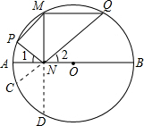 解答 解:延长QN交圆O于C,延长MN交圆O于D,