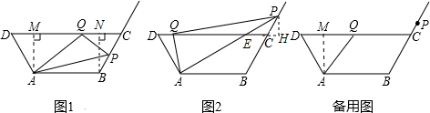 ∴CP=1,CQ=2,DA=2,DQ=4,