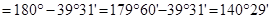 如果∠α=39°31’,∠α的余角∠β =_____,∠α的补角∠γ=_____,∠γ-∠β=___.