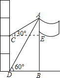 分析:过点C作CE⊥AB于点E,设旗杆AB的高度为x米,在Rt△ABD中求出BD的长度,然后在Rt△ACE中表示出AE的长度,根据AB-AE=2倍楼房的高度,代入数值求出x的长度.