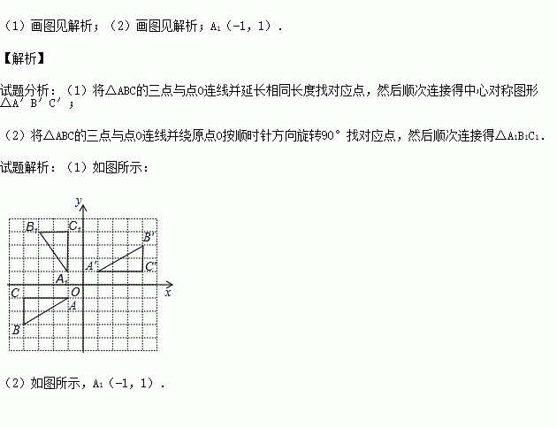 (2)将△ABC绕原点O按顺时针方向旋转90°后得到△A1B1C1,画出△A1B1C1,并写出点A1的坐标.