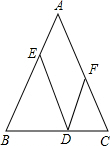 解:∵两个等边△ABD,△CBD的边长均为2,将△ABD沿AC方向向右平移到△A′B′D′的位置,