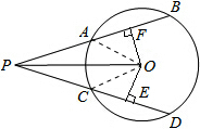 如图,P是⊙O外一点,PA、PC分别与⊙O相交于点A、B和C、D,OF⊥AB,OE⊥CD,已知∠BPO=∠DPO,求证:
