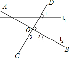 如图,直线l1∥l2,AB⊥CD,∠1=34°,求∠2的度数.