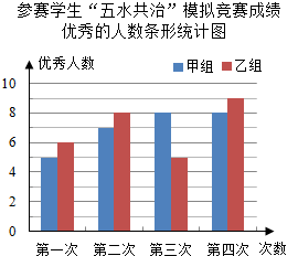 九(3)班为了组队参加学校举行的“五水共治”知识竞赛,在班里选取了若干名学生,分成人数相同的甲、乙两组,进行了四次“五水共治”模拟竞赛,成绩优秀的人数和优秀率分别绘制成如图统计图.