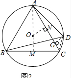 (2)解:做DG⊥AC于G,作ON⊥AC于N,延长AO交BC于M,![]()