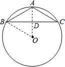 分析:已知△ABC是等腰三角形,根据等腰三角形的性质,若过A作底边BC的垂线,则AD必过圆心O,在Rt△OBD中,用半径表示出OD的长,即可用勾股定理求得半径的长.