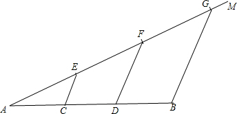 连接GB,过F点作FB∥GB交AB于D,过E点作EC∥GB交AB于C点,