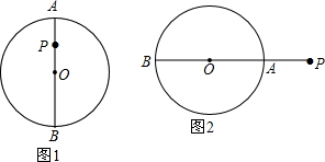 解答 解:①点P在圆内;如图1,∵AP=3cm,BP=9cm,∴AB=3+9=12cm,∴OA=6cm;②点P在圆外;如图,∵AP=3cm,BP=9cm,∴AB=6cm,∴OA=3cm.故答案为:6cm或3cm.