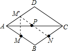 解答:解:作点M关于AC的对称点M′,连接M′N交AC于P,此时MP+NP有最小值.