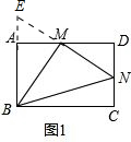 解答 解:(1)延长BA、NM交于点E,如图1.![]()